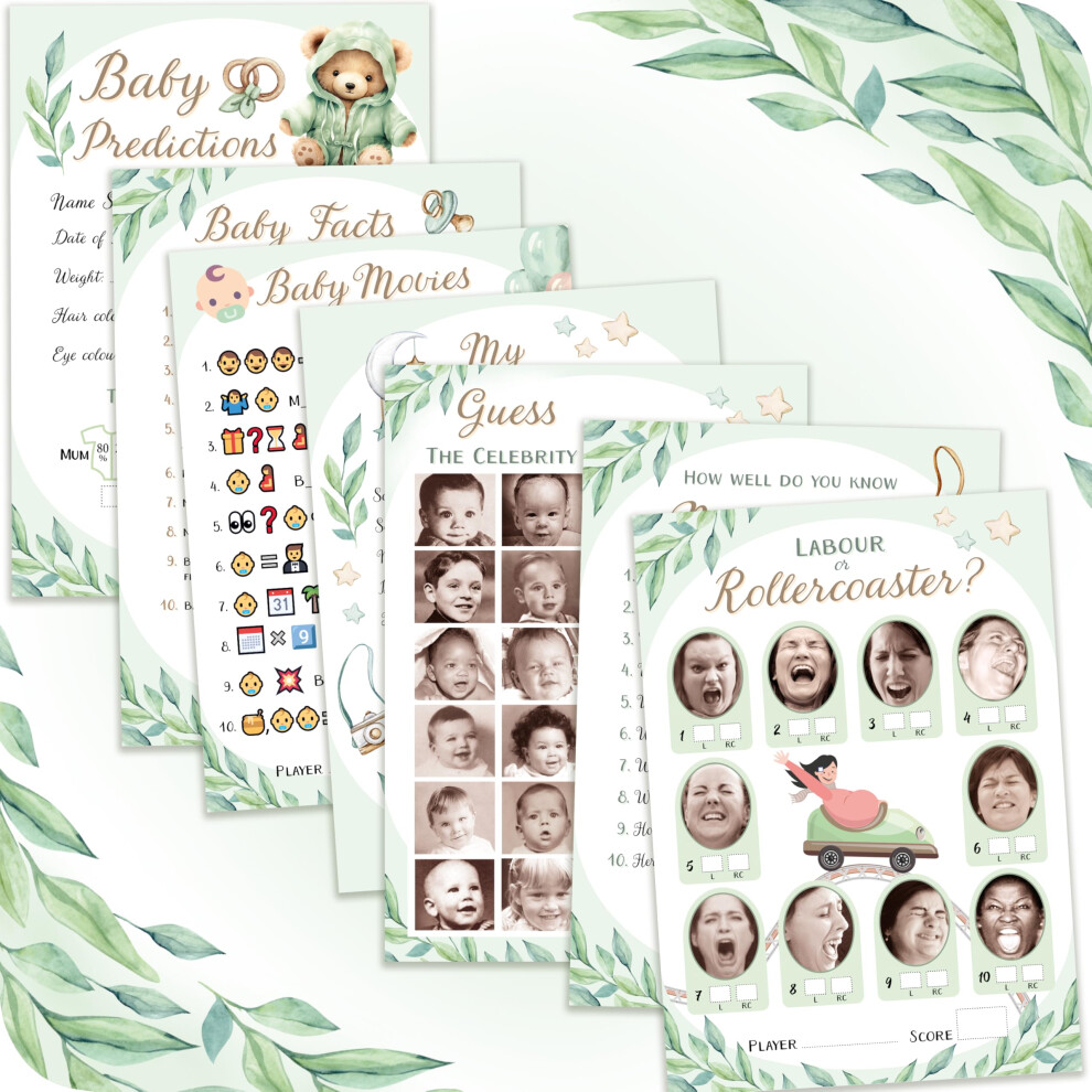 Baby Shower Games (7 Fun Games for 12 Guests), Baby Predictions, Guess The Celebrity, Labour or Rollercoaster, Baby Movie Emoji Game and More, Teddy