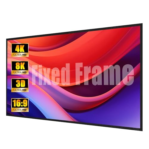 72-Inch Fixed Frame Projection Screen, 16:9 8K 4K Ultra HD 3D Ready Wall-Mounted Movies Screen for Home Theater, Office, for Projectors with 2500 ANSI Lumens or Higher