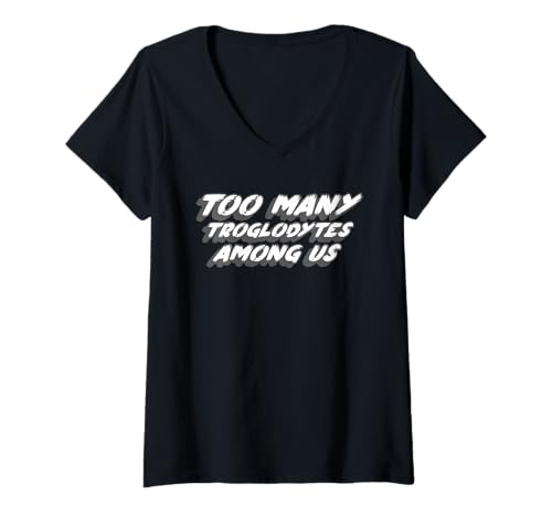 Womens Too Many Troglodytes Among Us | Troglodyte Science V-Neck T-Shirt