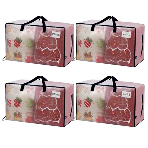 VENO 4 Pack Moving Bags and Large Christmas Decoration Storage Bins with lids. Alternative to Moving Boxes, Packing Supplies for College. Heavy Duty Totes (Clear, 4 Pack)