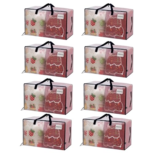 VENO 8 Pack Moving Bags and Large Christmas Decoration Storage Bins with lids. Alternative to Moving Boxes, Packing Supplies for College. Heavy Duty Totes (Clear, 8 Pack)