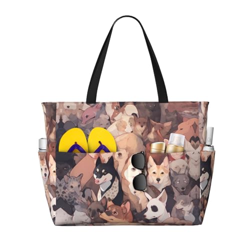 LPLSNWS Dog Pictures Patterned casual beach bag - large capacity, suitable for vacations, camping, moving, shopping, etc.