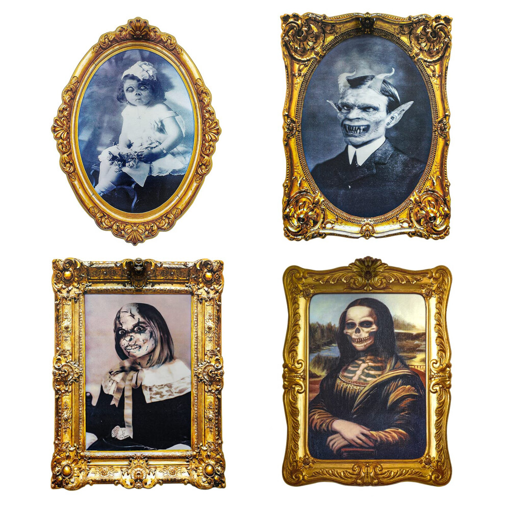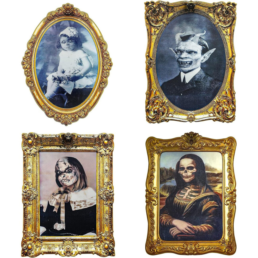 ECGER Halloween Decorations Indoor Scary 3d Changing Face Pictures, Moving Portrait Frame Decor, for Horror Party Ghost Castle Haunted House Home Decoration (4 Pieces)