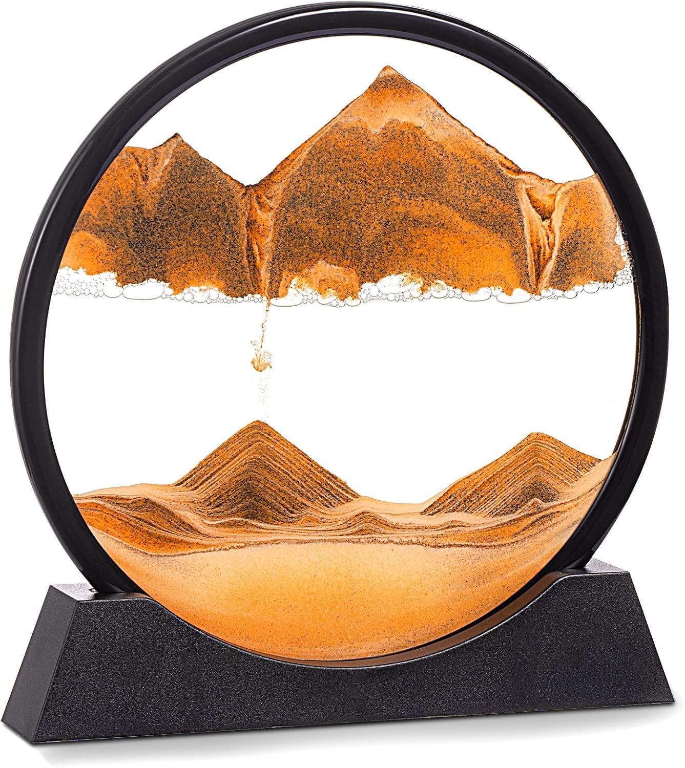 Nexoria Moving Sand Art Picture, Glass 3D Hourglass Deep Sea Sandscape Painting with LED Moving Sand Art Pictures Lamp Flowing Sand Painting Liquid Motion Table Lamp Sand Art Night Light (A-Orange)
