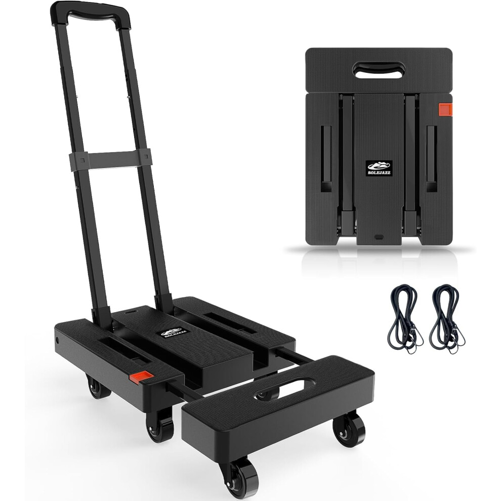 SOLEJAZZ Folding Hand Truck Dolly, Portable Dolly for Moving, 230KG Trolley Dolly with 6 Wheels & 2 Bungee Cords for Luggage