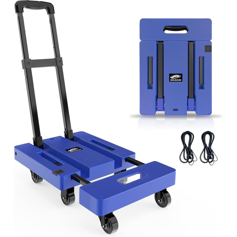 SOLEJAZZ Fold Up Portable Dolly, Folding Hand Truck for Moving, 230KG Trolley Dolly with 6 Wheels & 2 Bungee Cords for Luggage, Travel, Moving, Shopping, Office Use, Blue
