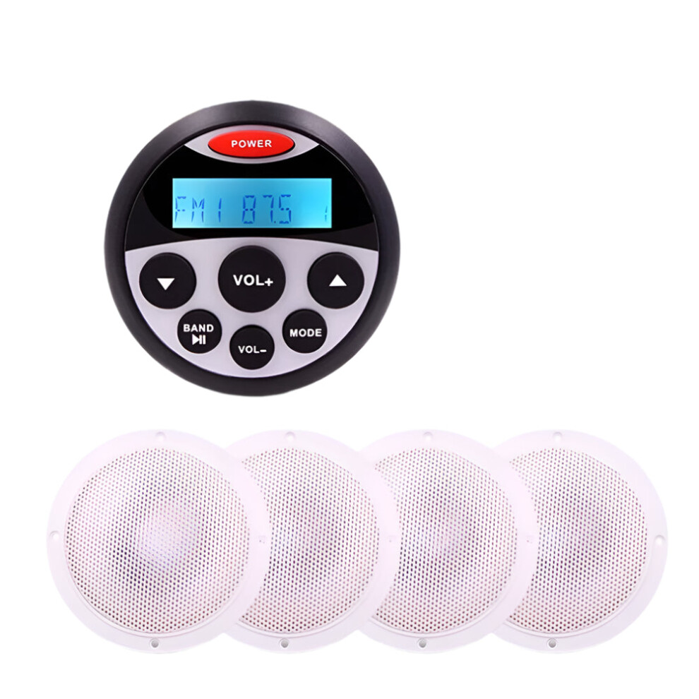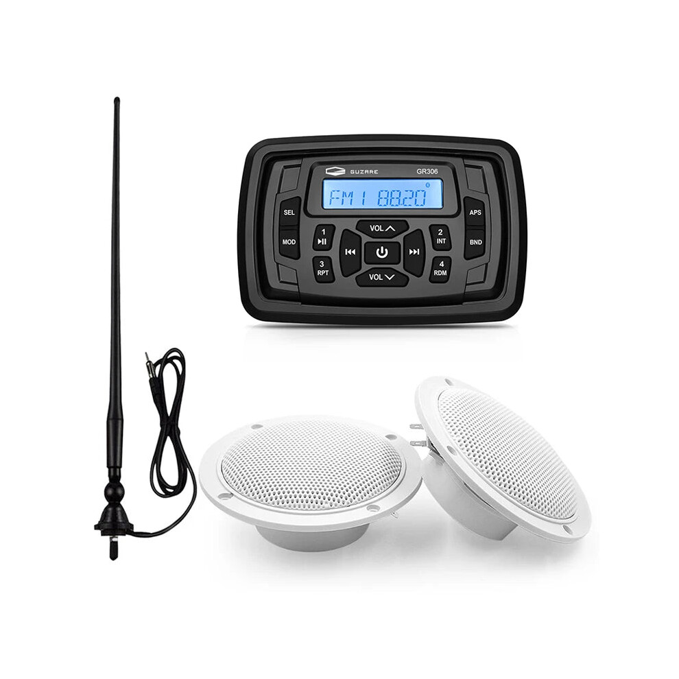 Marine Bluetooth Audio Stereo with Waterproof MP3 Player & 4-Inch Speakers - I for Boats, ATVs, Spas, and Golf Carts with FM/AM Antenna