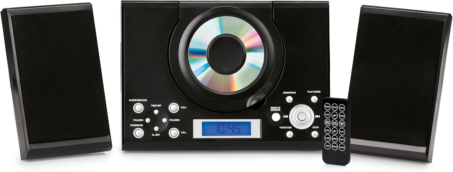 Grouptronics CD Player with Speakers - HiFi System for Home with Radio, USB, MP3, Clock Alarm & Remote - Compact Stereo System with Wall Mount Design - Small CD Players for Home - GTMC-101