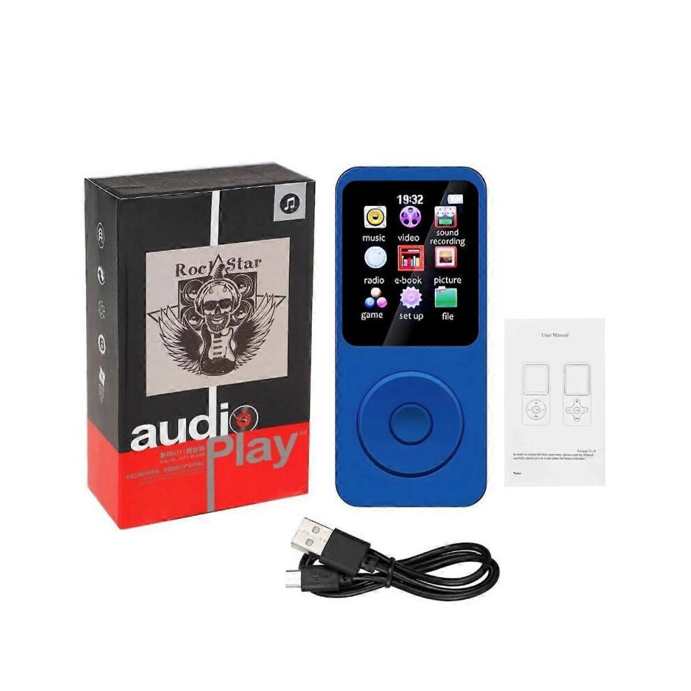 (Without TF Card, blue) Mini MP3 MP4 Players FM Radio Bluetooth-Compatible 5.4 Stereo Music Player Portable Speaker Support FM TF Card E-Book Voice Re