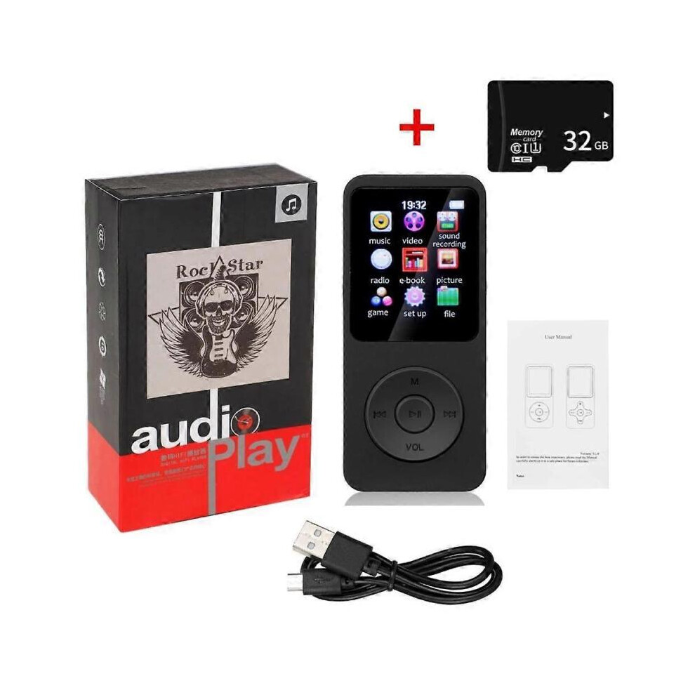Mp3 Player with Camera Mini Clock, Portable Black Stopwatch Mp3 Mp4 Players (32G Small Memory Card)