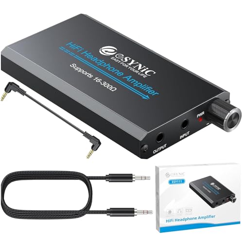 eSynic Professional 16-300Ω Headphone Amplifier Rechargeable Headphone AMP Portable Headphone Amplifier 3.5mm Headphone Amps with Two-stage Gain Switch Perfect for MP3 MP4 Phones Digital Players etc