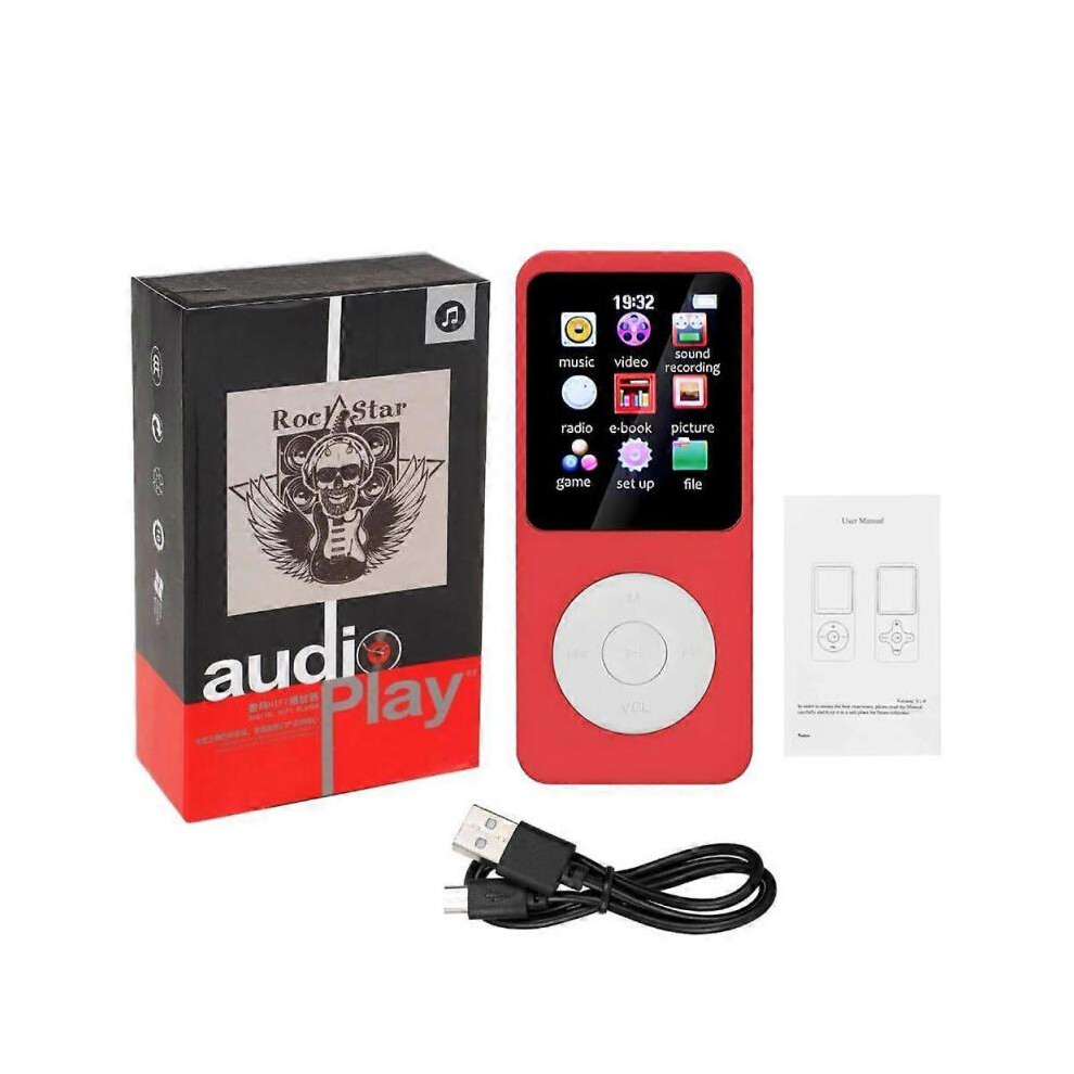 (Without TF Card, red) Mini MP3 MP4 Players FM Radio Bluetooth-Compatible 5.4 Stereo Music Player Portable Speaker Support FM TF Card E-Book Voice Rec