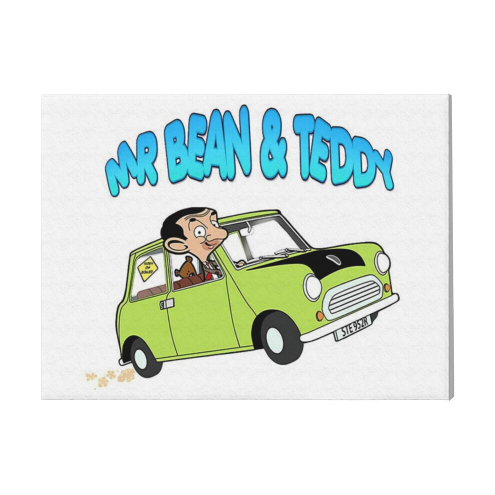 (Mr Bean And Teddy's Car=2366) Canvas Print DIY Framed Kit Wall Art for Living Room Bedroom Retro Farmhouse Decor 16x20 inch