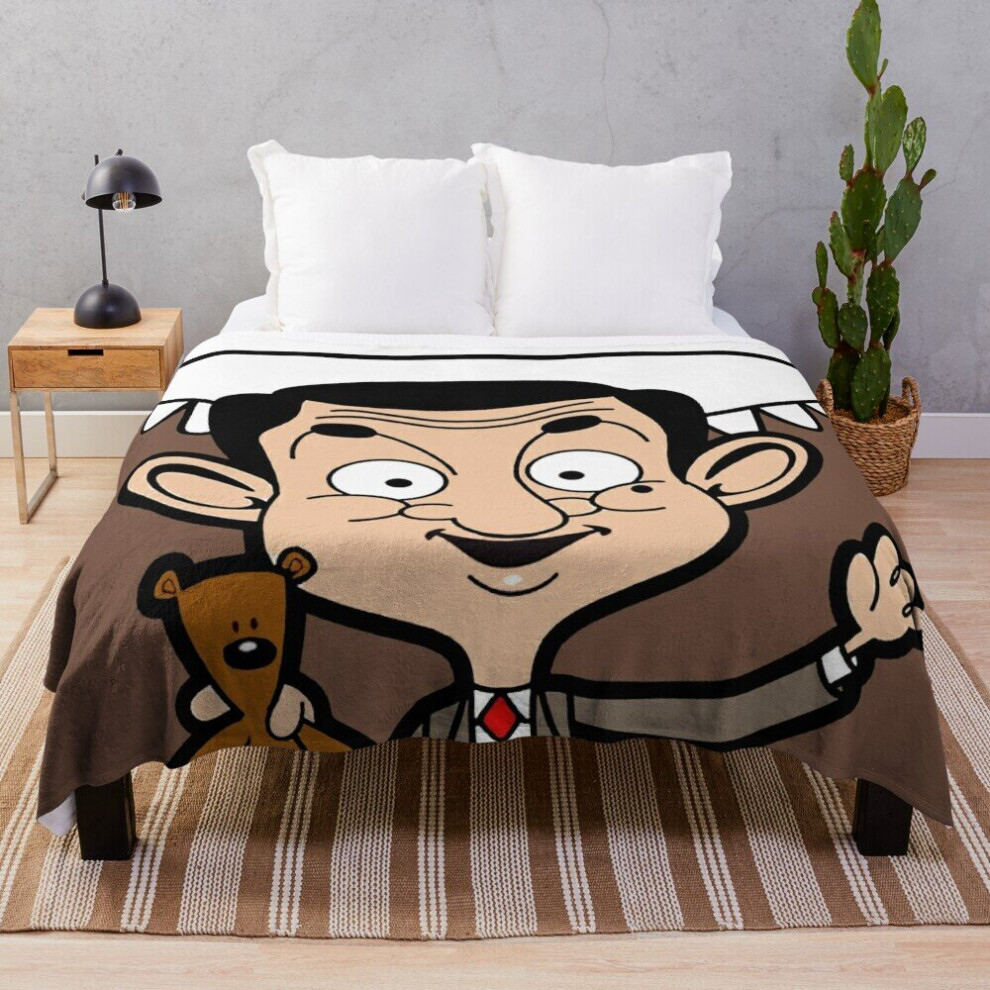 Fleece Throw Blanket Mr Bean and Teddy armchair for Sofa Couch Kids 60 x 50 Inches