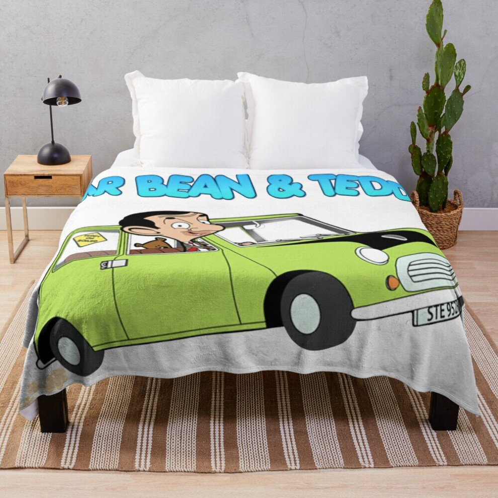 Fleece Throw Blanket Mr Bean and Teddy in the car for Sofa Couch Kids 60 x 50 Inches