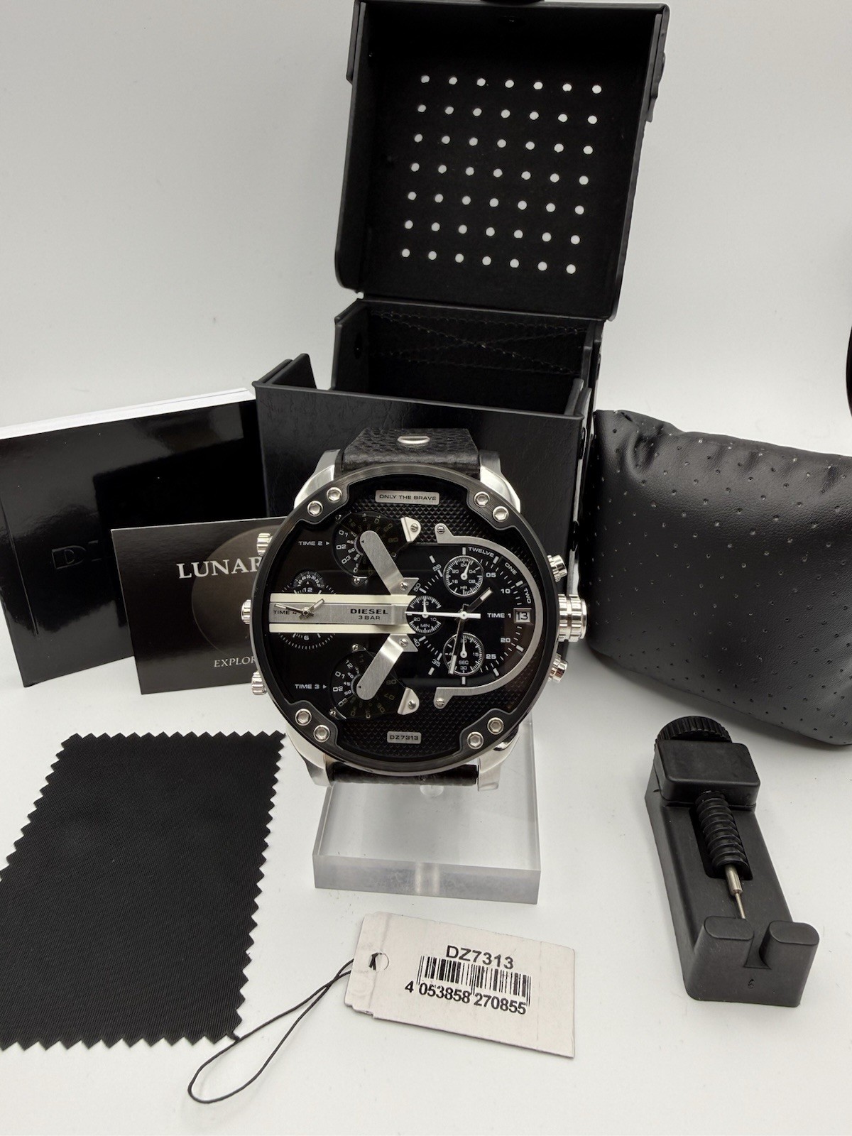NEW DIESEL MENS WATCH MR BIG DADDY DZ7313 BLACK DIAL 57MM BLACK LEATHER STRAP