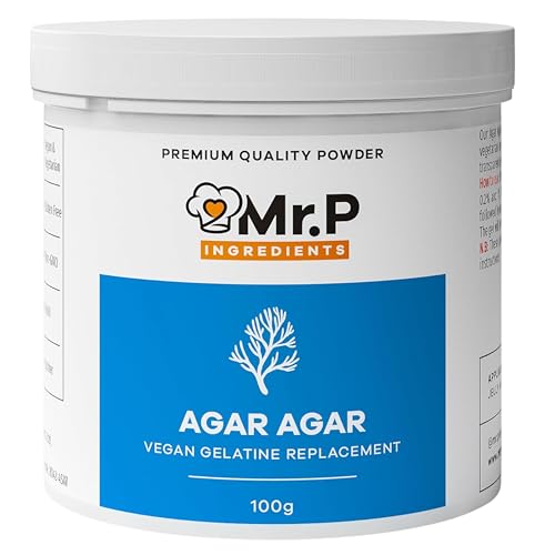 Mr.P Ingredients Agar Agar 100g Powder Vegan Gelatine Replacement Ideal for Jelly Mousse Molecular Gastronomy Gelling Agent Vegan Vegetarian Halal Kosher Non-GMO (Recyclable Pot)