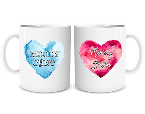 Set of 2 Mugs Funny Rude Moody C*nt Moody Bitch Coffee Mug Anniversary Mugs His and Hers Mr and Mrs Joke Novelty WSDMUG2056
