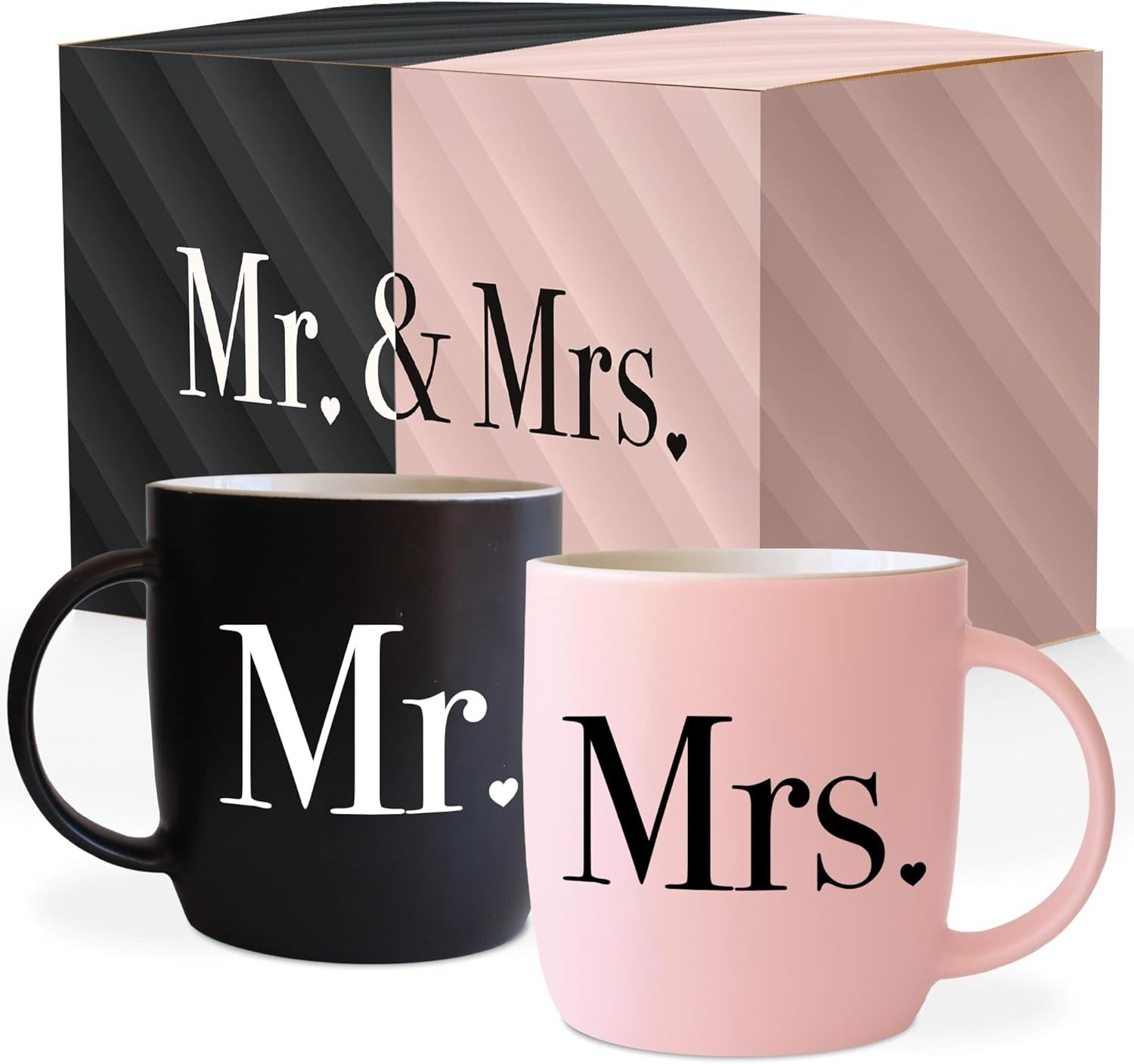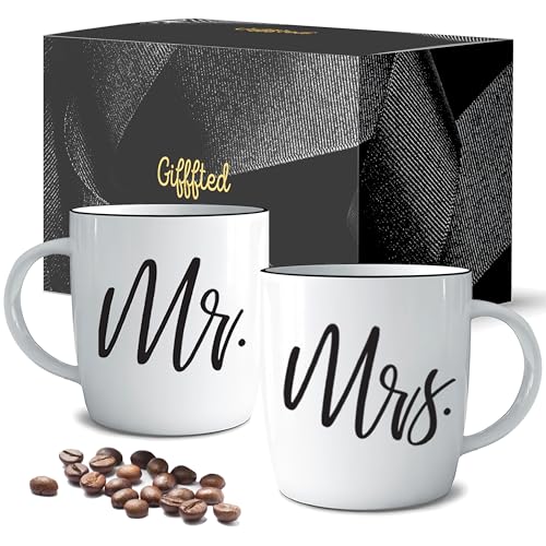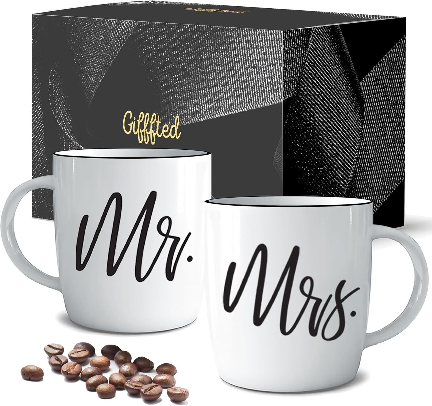 Triple Gifffted Mr and Mrs Coffee Mugs - Engagement Gifts for Couples, Wedding