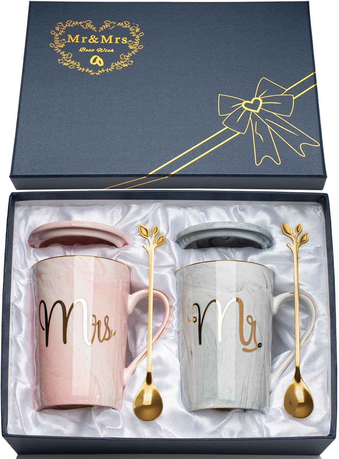 Engagement Anniversary Presents, Mr and Mrs Coffee Mugs with Marble Ceramic Mugs, Wedding Gift Set, Elegant Gift Packaging, 12 x 12.5 x 8.3cm