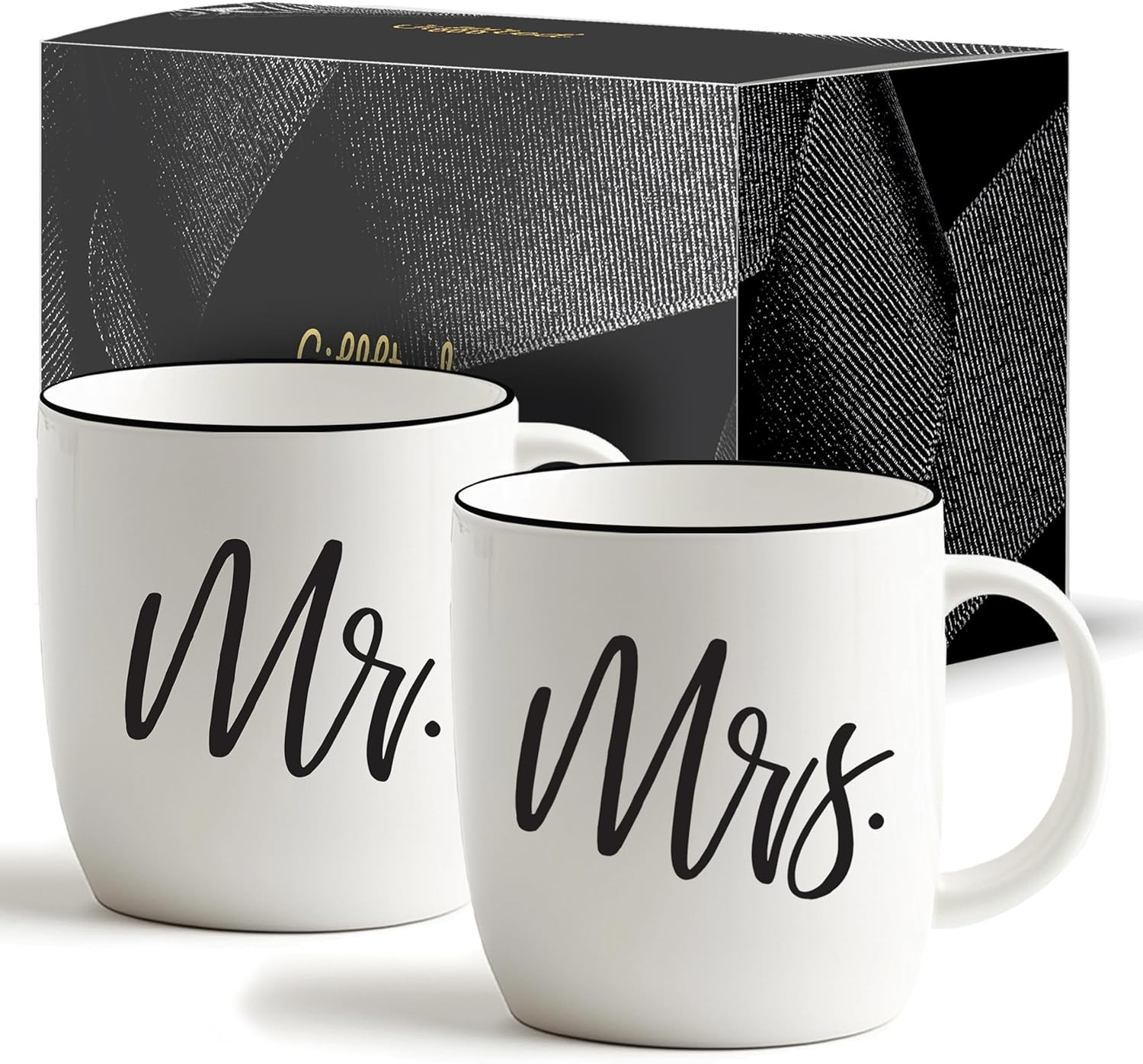 Stylish Mr and Mrs Coffee Mugs, Gift Set for Couples, Elegant Engagement Bridal Shower Gifts, Microwave Safe Couple Mugs (2)
