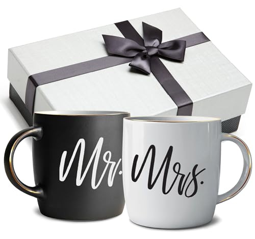 EXREIZST Mr and Mrs Coffee Mugs - Wedding Gifts-for Bride and Groom, Bridal S
