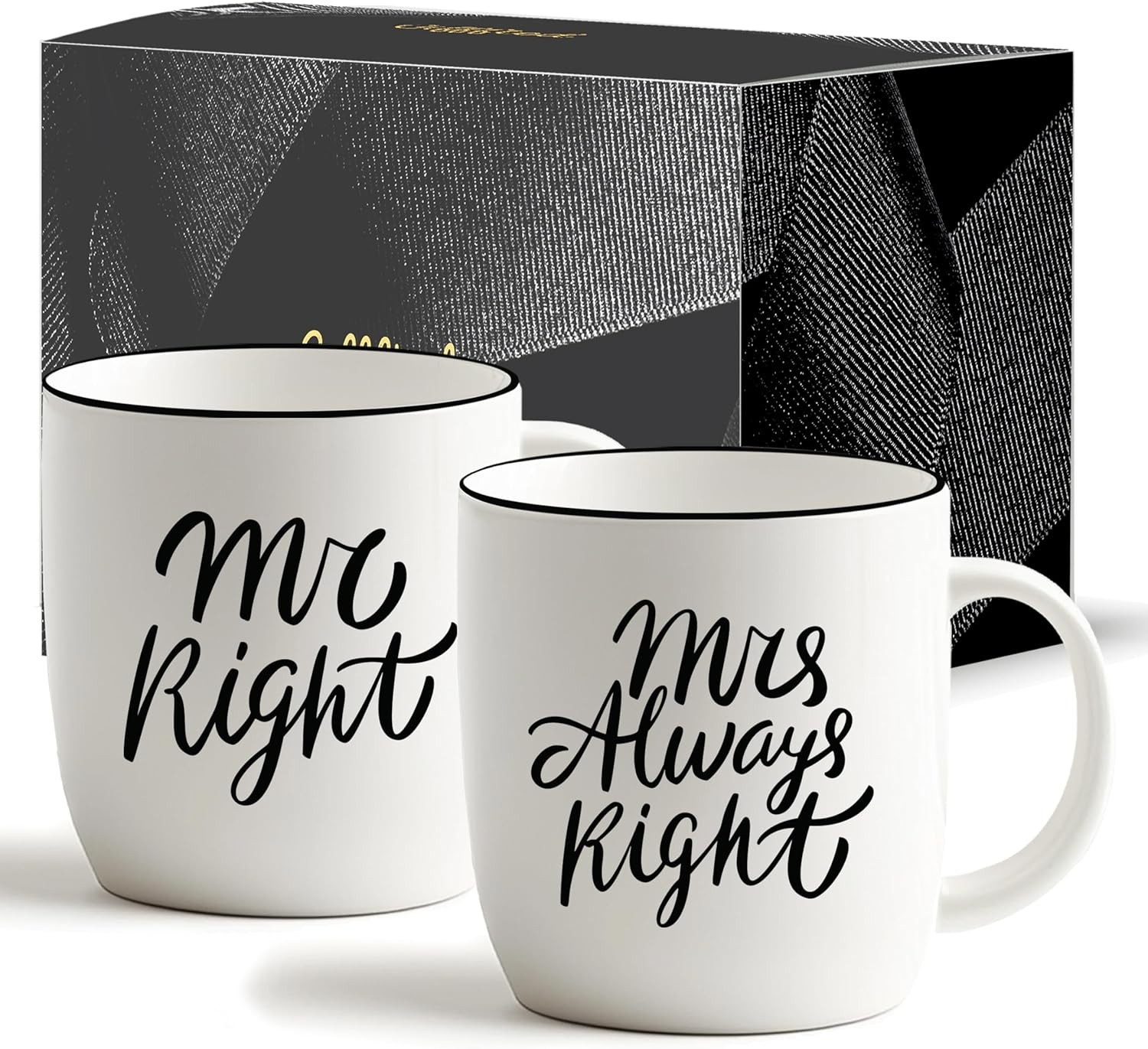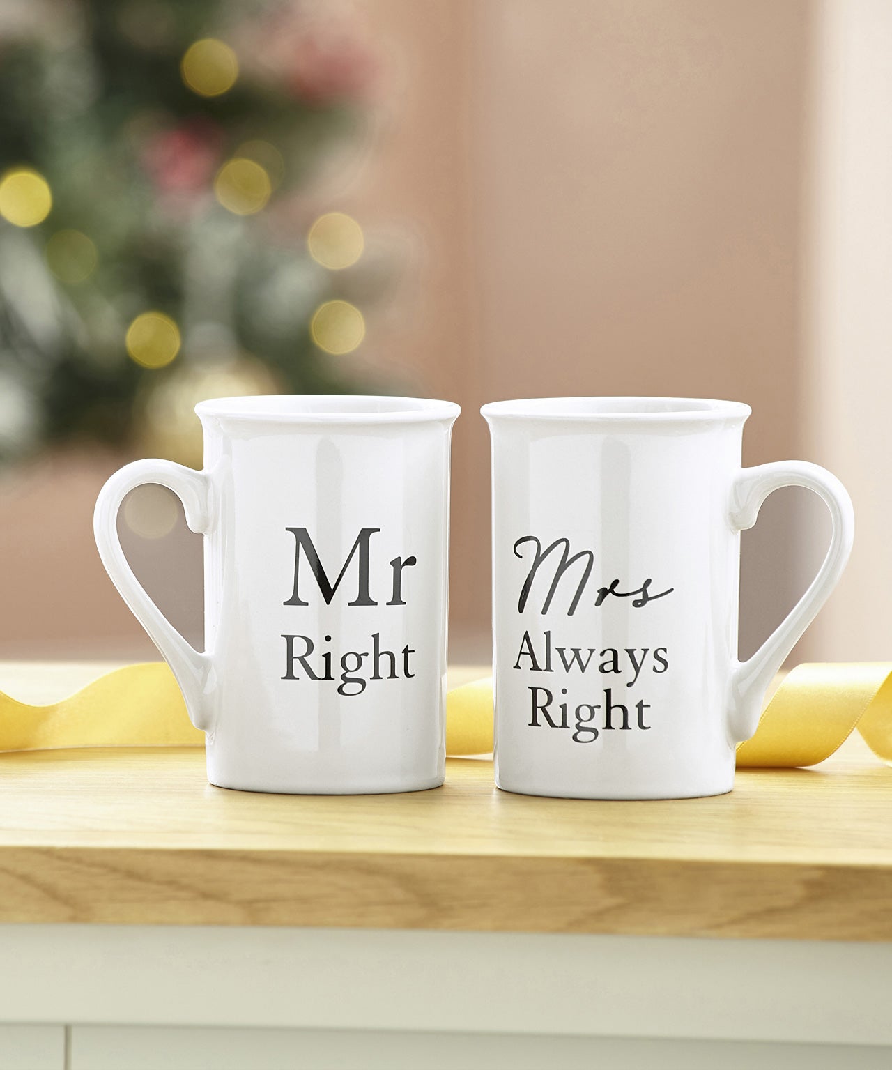 Mr Right and Mrs Always Right Couples Coffee Mugs Cups Gifts Set for Engagement