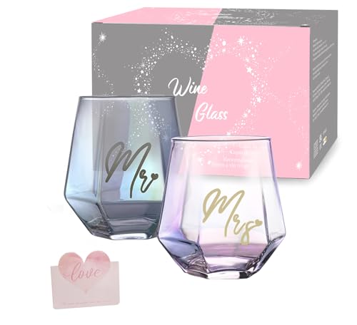 Mr and Mrs Couple Glasses,Wine Glass Mugs Set,Wedding Mugs for Bride and Groom,Wine Glasses Gifts for Couple Anniversary,Gifts for women,Bridal Shower,Engagement,His & Hers,Christmas Valentines Day