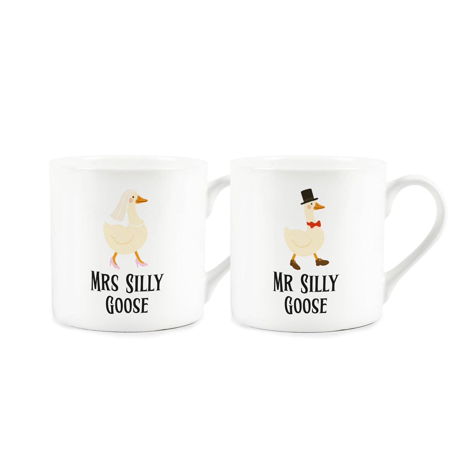 Mr & Mrs Silly Goose Mugs Set - Set of 2 Bone China Drinks Cups Wedding Gifts