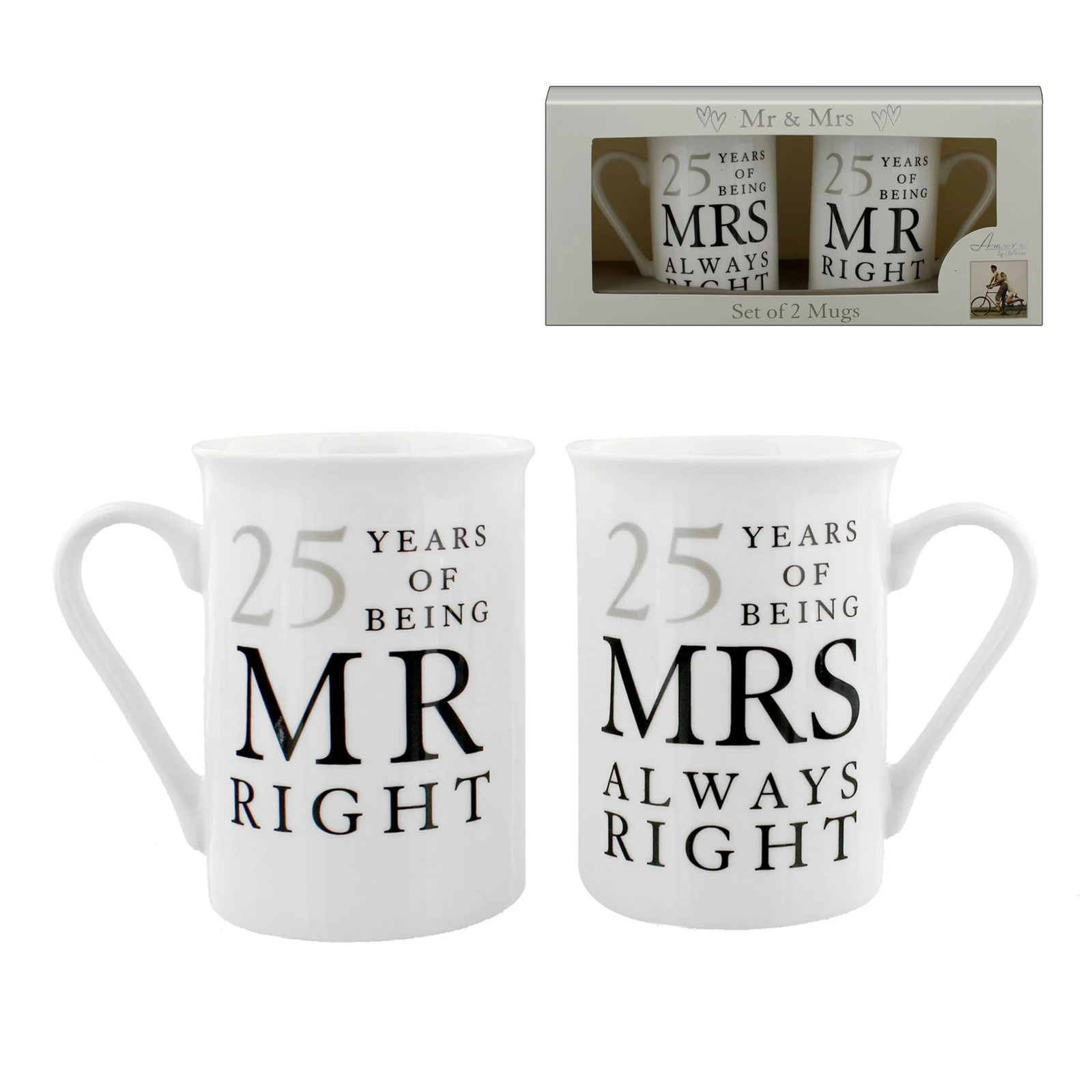 25 Years of Being Mr Right and Mrs Always Right Mugs
