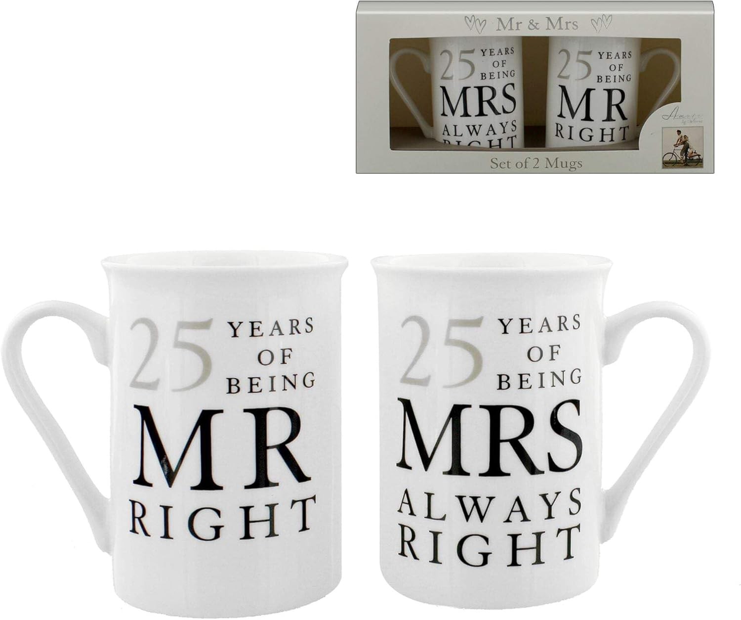 Amore 25th Anniversary Set of 2 China Mugs 'Mr Right & Mrs Always Right'...