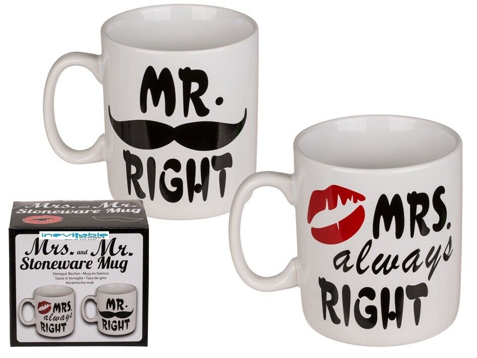 Mr Right and Mrs Always Couples Coffee Mugs Cups Gifts Set for...