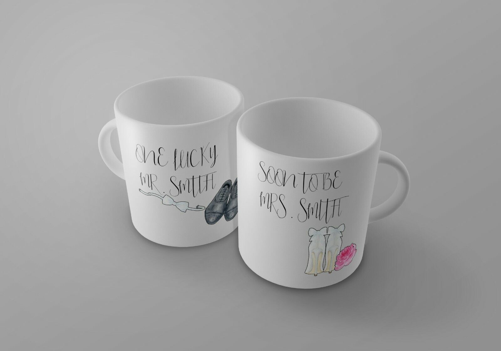 Lucky Mr.Smith+Soon To Be Mrs.Smith-Set Of Novelty Mugs/Engagement -Personalised