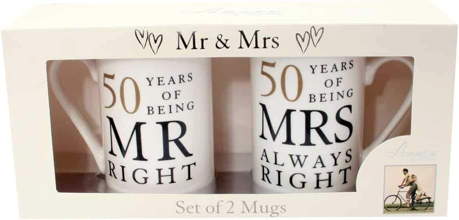 50 Years Mr & Mrs Mugs Amore Mug Set in A Gift Box