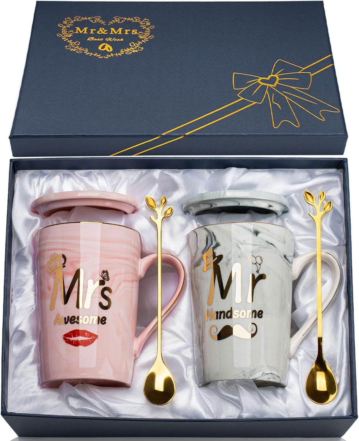 Romantic Gift for Couples, Mr and Mrs Coffee Mugs, Elegant Gifts Box Included, Perfect for Wedding Gifts, Bridal Shower, Anniversary Present