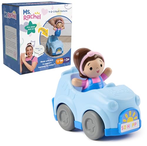 Ms. Rachel 1-2-3 Roll! Vehicle with Click-in Figure & Pull Back Action, Educational Toys & Toddler Toys for Girls & Boys Ages 1-3Y+