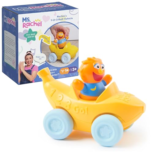 Ms. Rachel, Herbie’s 1-2-3 Roll! Vehicle with Click-in Figure & Pull Back Action, Educational Toys & Toddler Toys for Girls & Boys Ages 1-3Y+