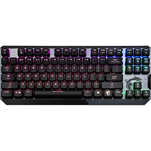 MSI Vigor GK50 Low Profile TKL ES Mechanical Gaming Keyboard, UK Layout Kailh Choc White Low Profile Switches Clicky, Ergonomic Keys, Anti-Slip Base, RGB Mystic Light per-Key, USB 2.0, Tenkeyless
