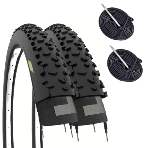 26 x 2.10 Mountain Bike Tyres Pair: Replacement Bike Tires 60 TPI 27.5 x 1.95/2.1/2.25, 29 x 2.1/2.25 Inch Compatible with MTB or Off Road Bicycle Pack of 2