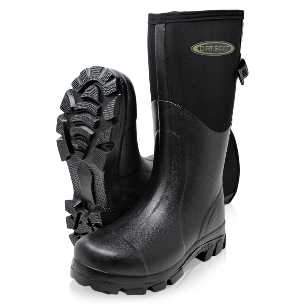 (12 UK EU46, Black) Dirt Boot Mens Neoprene Wellington Muck Field Sport Work Boots Rain Wellies
