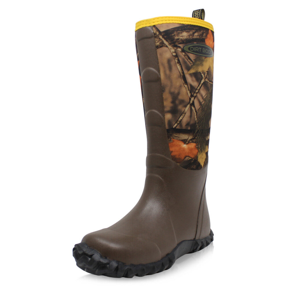 (12 UK EU46, Brown/Camo) Dirt Boot Mens Neoprene Wellington Muck Field Sport Work Boots Rain Wellies