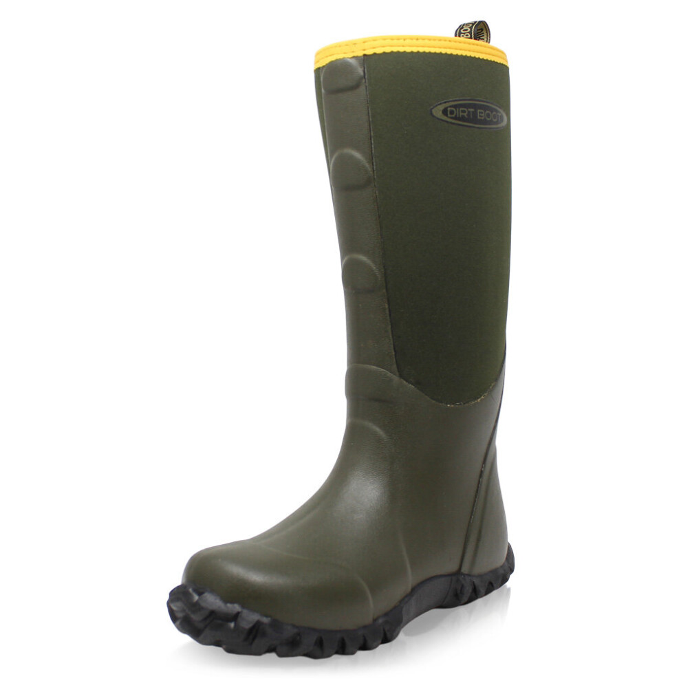 (7 UK EU41, Green) Dirt Boot Mens Neoprene Wellington Muck Field Sport Work Boots Rain Wellies