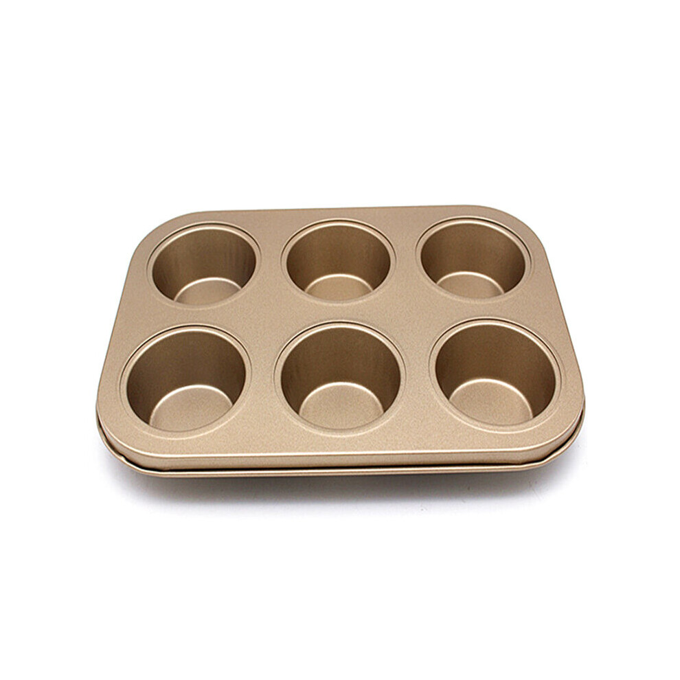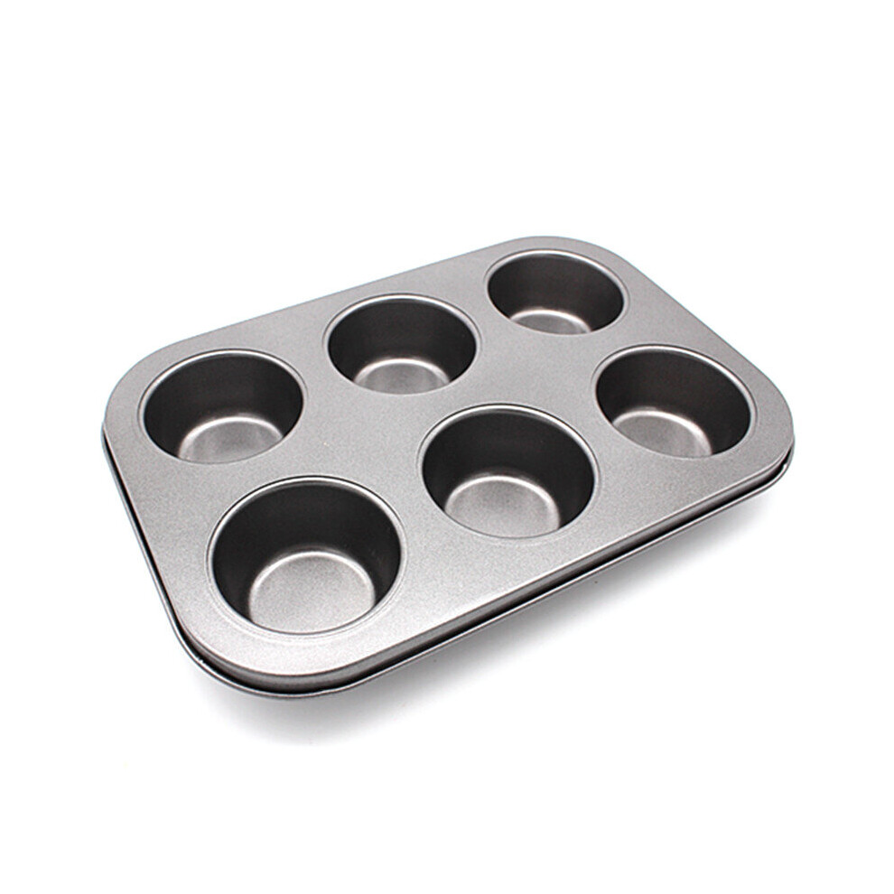 (02 Round) 6 Holes Nonstick Baking Pan Carbon Steel Muffin Cup Pan Mold Biscuit Baking Sheet Muffin Tray Diy Cupcake Pan Baking Supplies