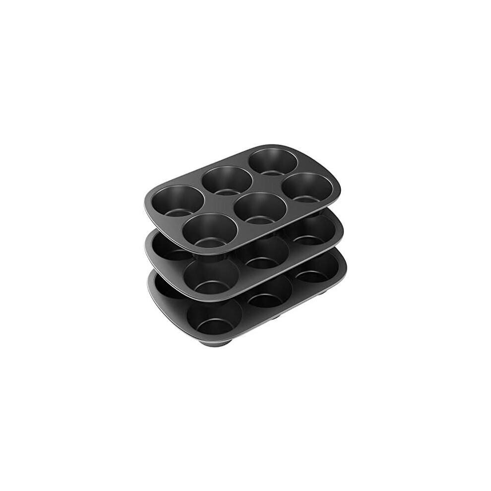 3 Pack Nonstick Muffin Pan, Carbon Steel Cupcake Pan, Easy to Clean and Perfect for Making Muffins or Cupcakes, 6 Cup Jumbo