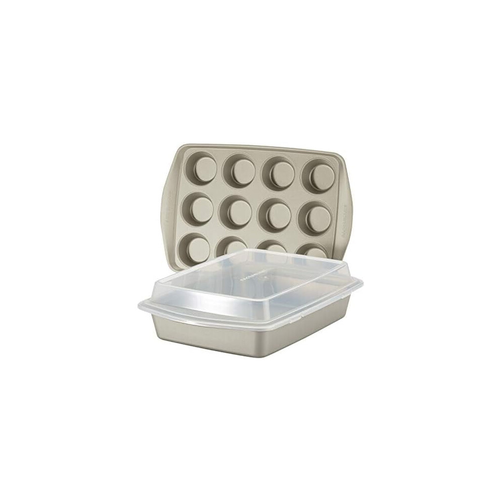 Nonstick Bakeware Set without Grips includes Nonstick Baking Pan with Lid and Muffin Pan / Cupcake Pan - 3 Piece, Silver