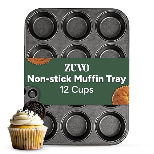 Zuvo Nonstick 12 Cup Muffin Tray - BPA Free & Dishwasher Safe Cupcake Pan Muffin Tray with Stain-Resistant, Baking Mould for Muffins or Cupcakes, Bakeware - (Black)