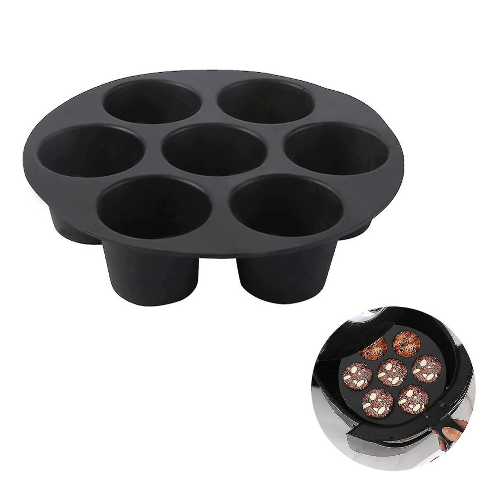 7 Cavity Silicone Air Fryer Pan Nonstick Brownie Cupcake Pan Round Pudding Cupcake 7 Mini Muffin Maker Cupcake Tray Baking Mold Air Fryer Accessories
