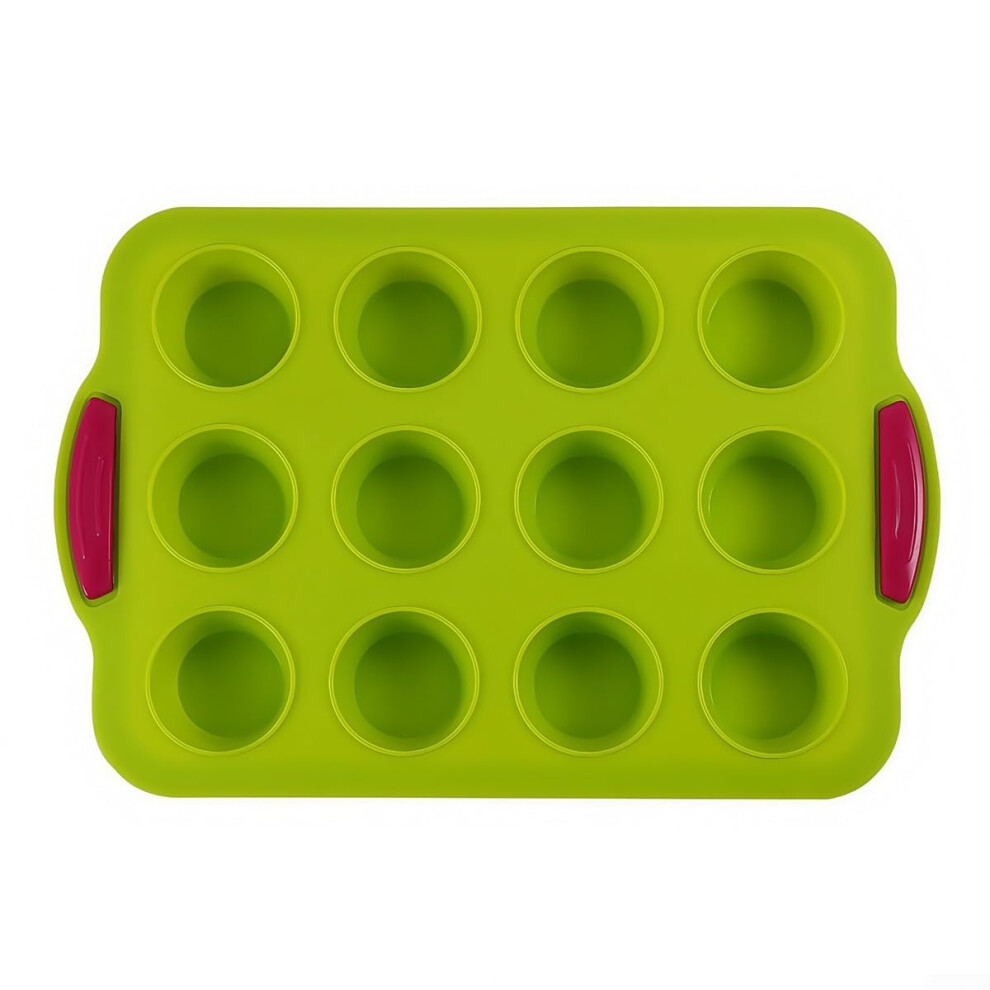 12Cavity Silicone Muffin Pan For Cupcakes And Baby Food, Easy Release Flexible Bakeware, Dishwasher Safe, Green