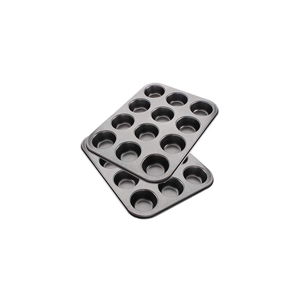 2 Pack 12 Muffin Cake Pan Baking Tray, Pudding Baking Pan, Carbon Steel Muffin Cupcake Tin for Muffins, Cupcakes, Non Stick, Ã 6.3cm, 35.5x26.5x2.7cm