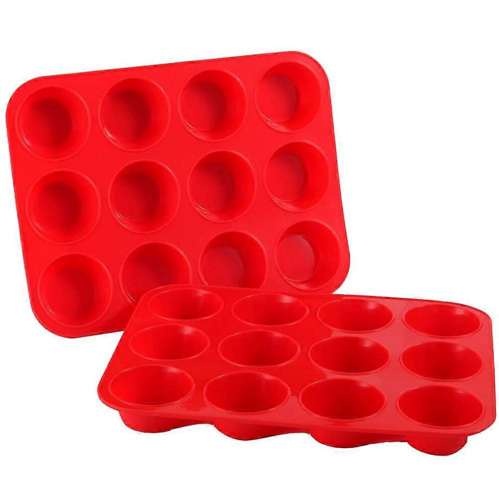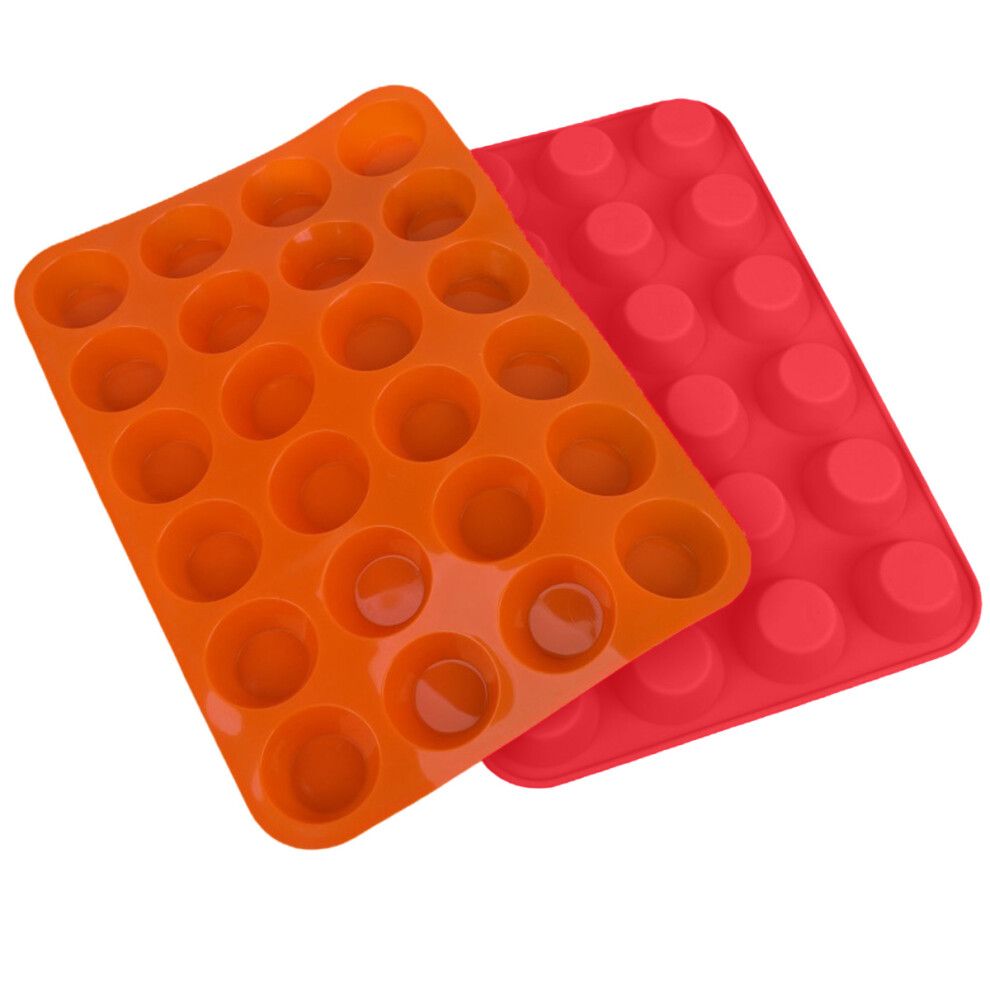 2pcs-Red muffin pan for 24 non-stick silicone mini muffins, cupcakes, brownies, cakes, pudding